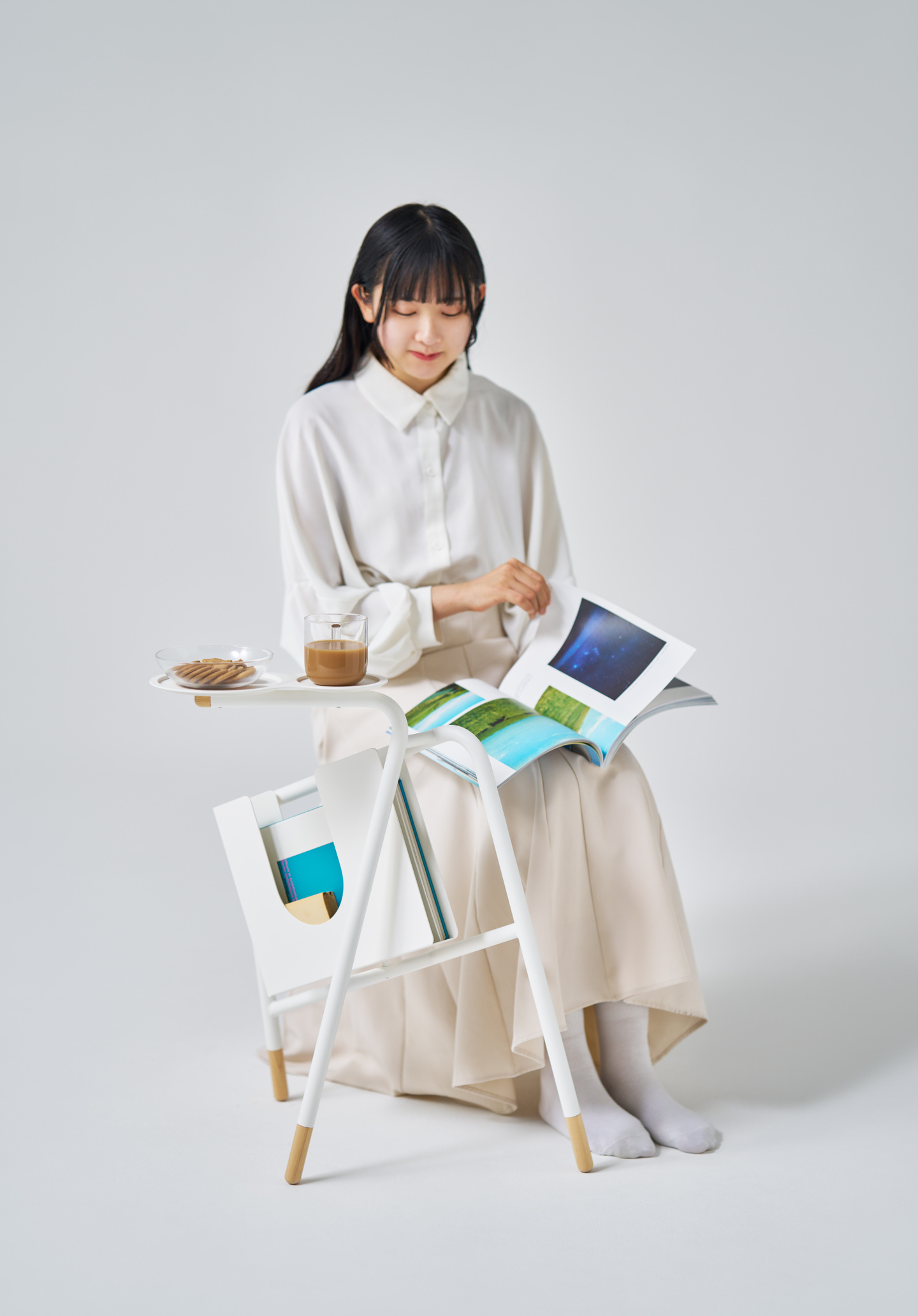それらをシンプルな形状のパイプが支えます。最小限とすることで軽量となり、気分や時間、季節に合わせて持ち運び、好みの場所で「和む時間」を満喫できます。