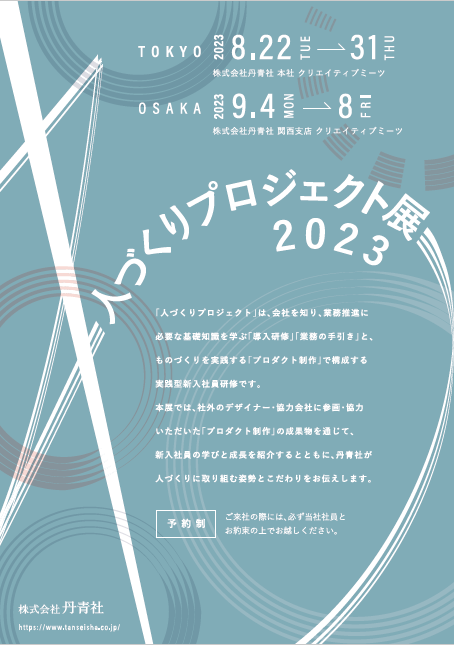 丹青社は、2023年8月22日(火)~8月31日(木)に本社クリエイティブミーツ、2023年9月4日(月)~9月8日(金)に関西支店クリエイティブミーツにおいて、「人づくりプロジェクト展2023」を実施します。