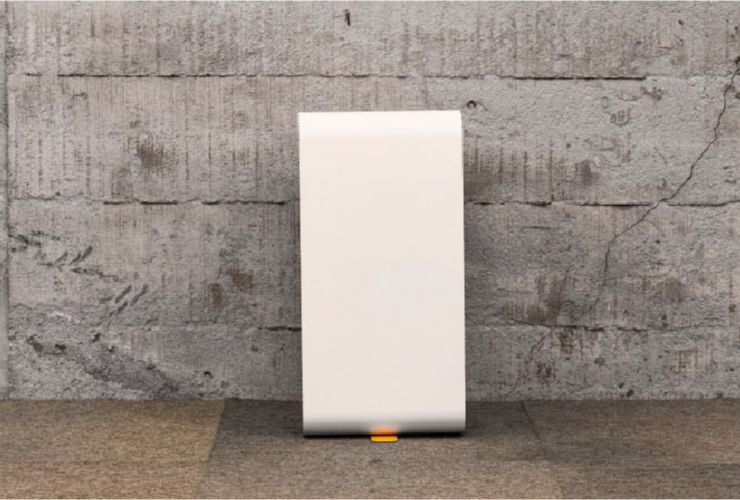 floatは、大きなRを持つスチールのカバーと、その内部に「浮かんでいるように」配置されたゴミ箱で構成されています。